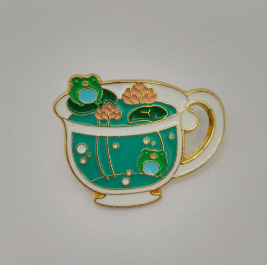 Frog Lotus Flower Tea Cup Pin Badge - Cute Cartoon Pin Badge