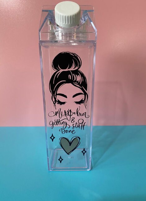 Milk Carton Water Bottle - Messy Bun - Boss Babe Unique Drinks Bottle