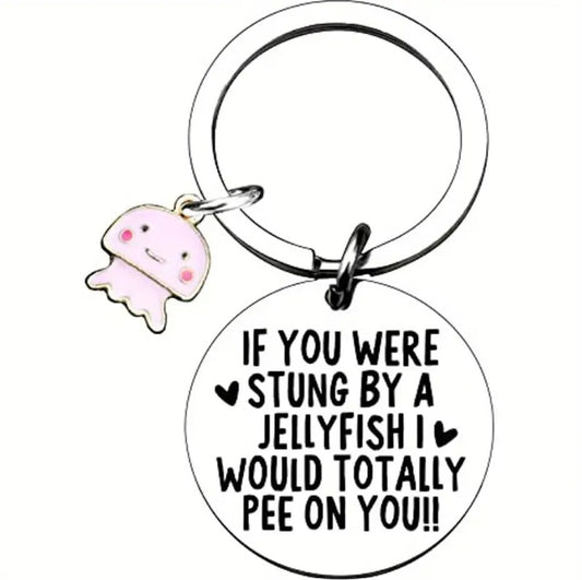 Jellyfish Slogan Pom Pom Keyring - Funny Key Chain Gift