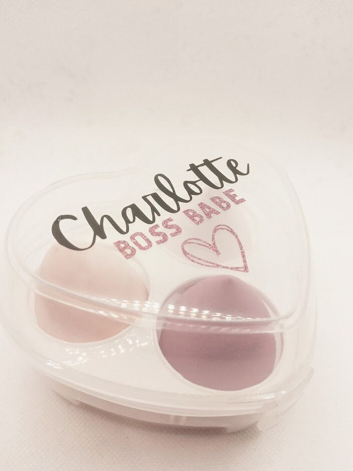 Makeup Sponge Box - BOSS BABE PERSONALISED - Heart Makeup Sponge Gift Box