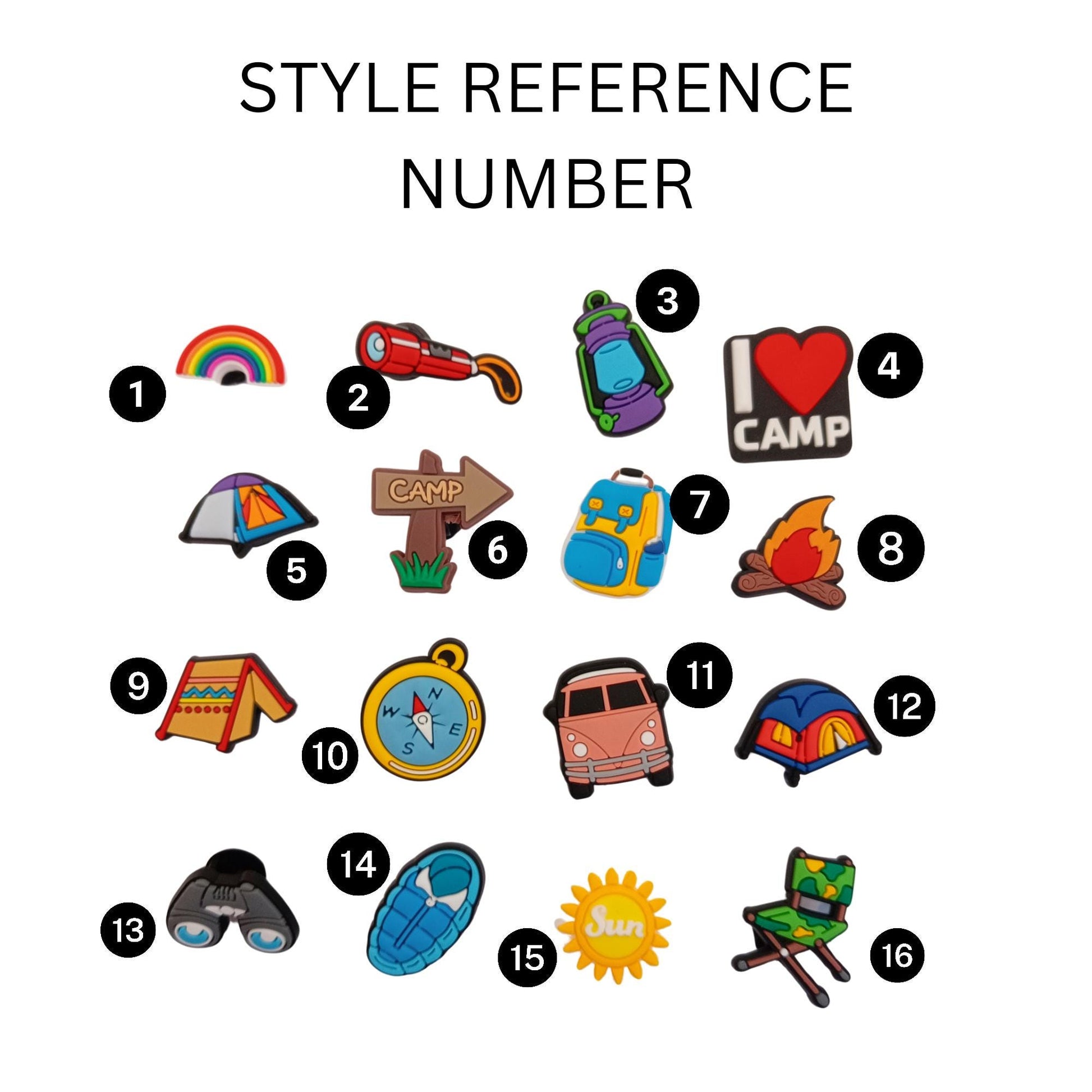 This adorable selection of camping croc charms are a must for the explorers and wannabe glampers alike! These cute adventure charms are the perfect choice to decorate your crocs. Please use the style reference in the images to help make your selection.
