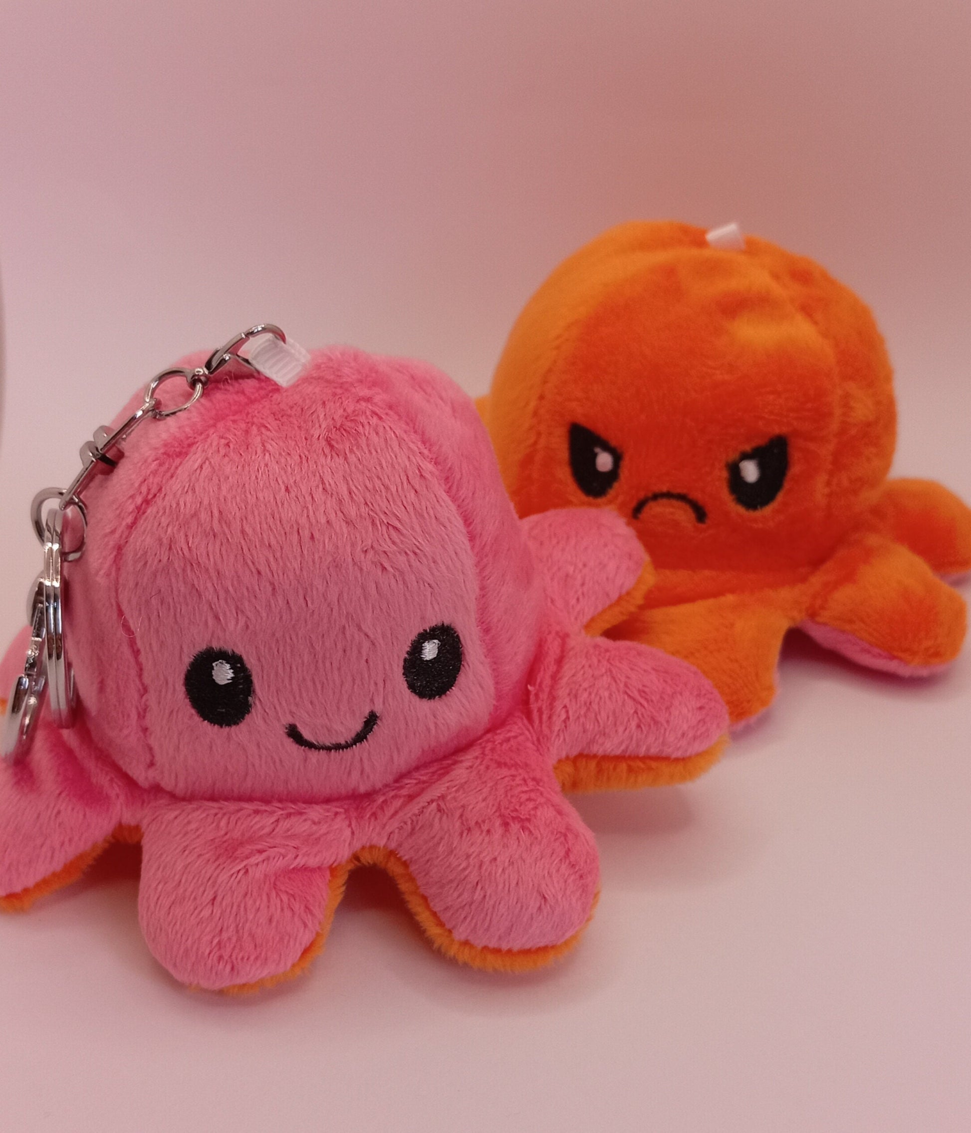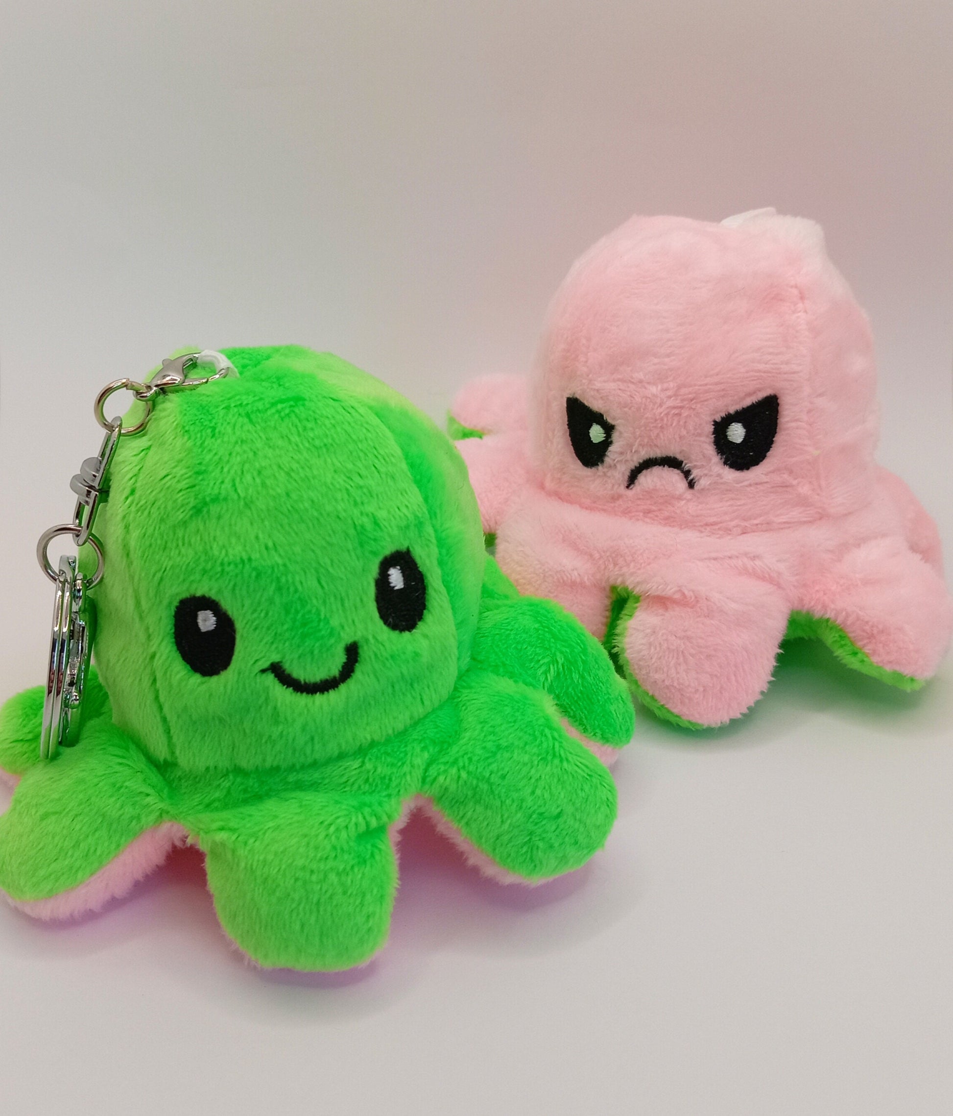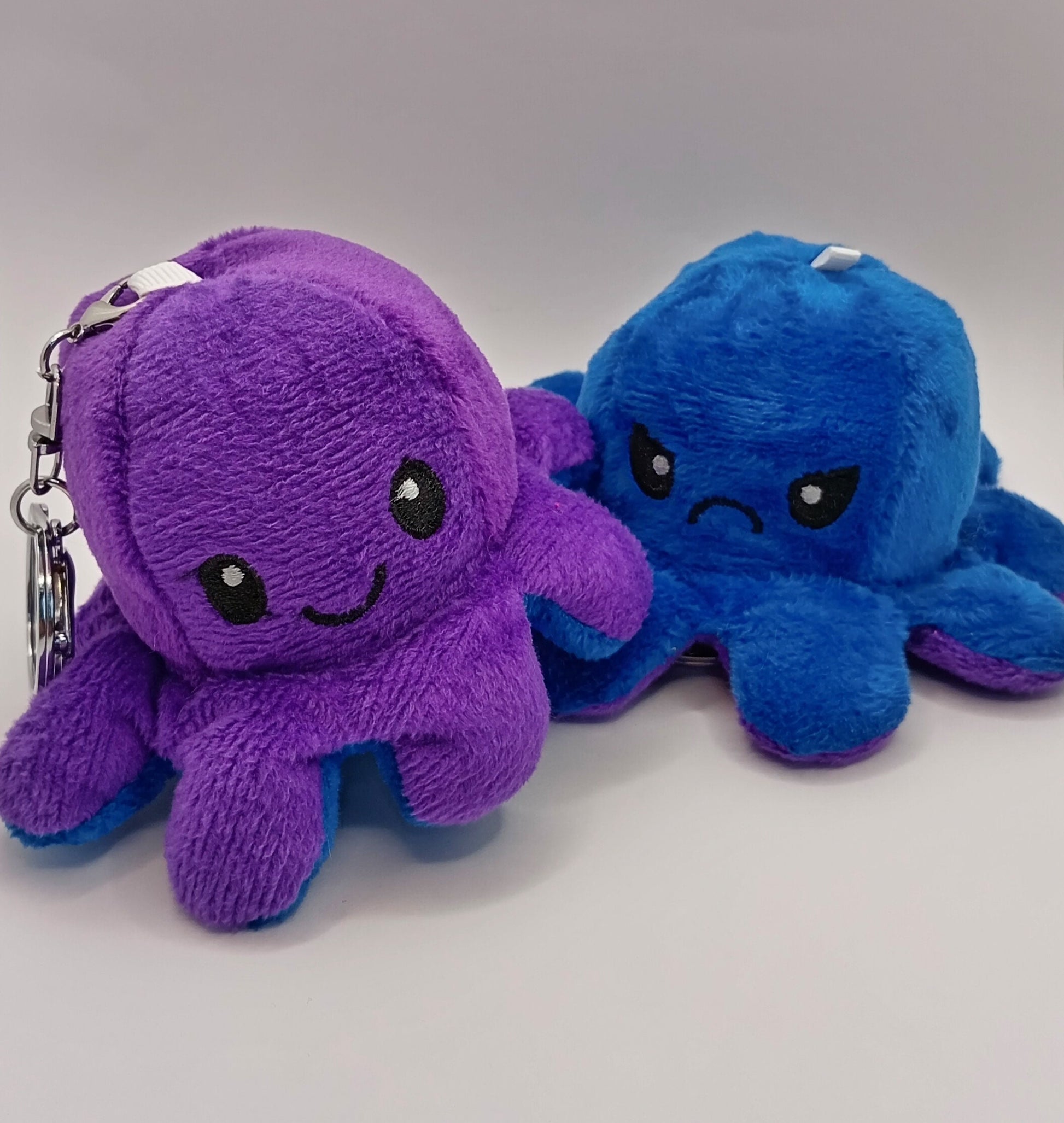 Feel good with our adorable anti-stress reversible octopus keyrings. Our little plushie octopuses are the perfect accessory for bags and keys. Each octopus is reversible to show happy and sad emotions.