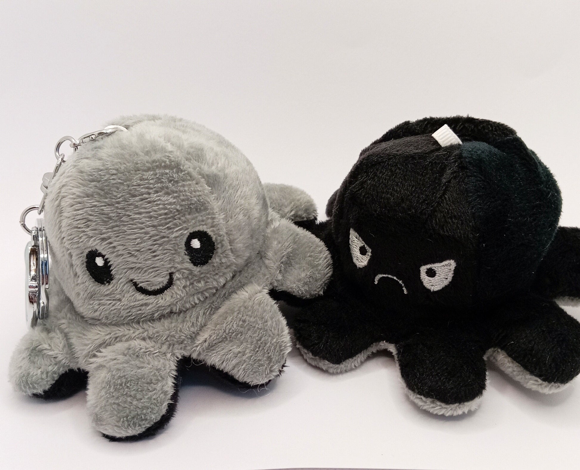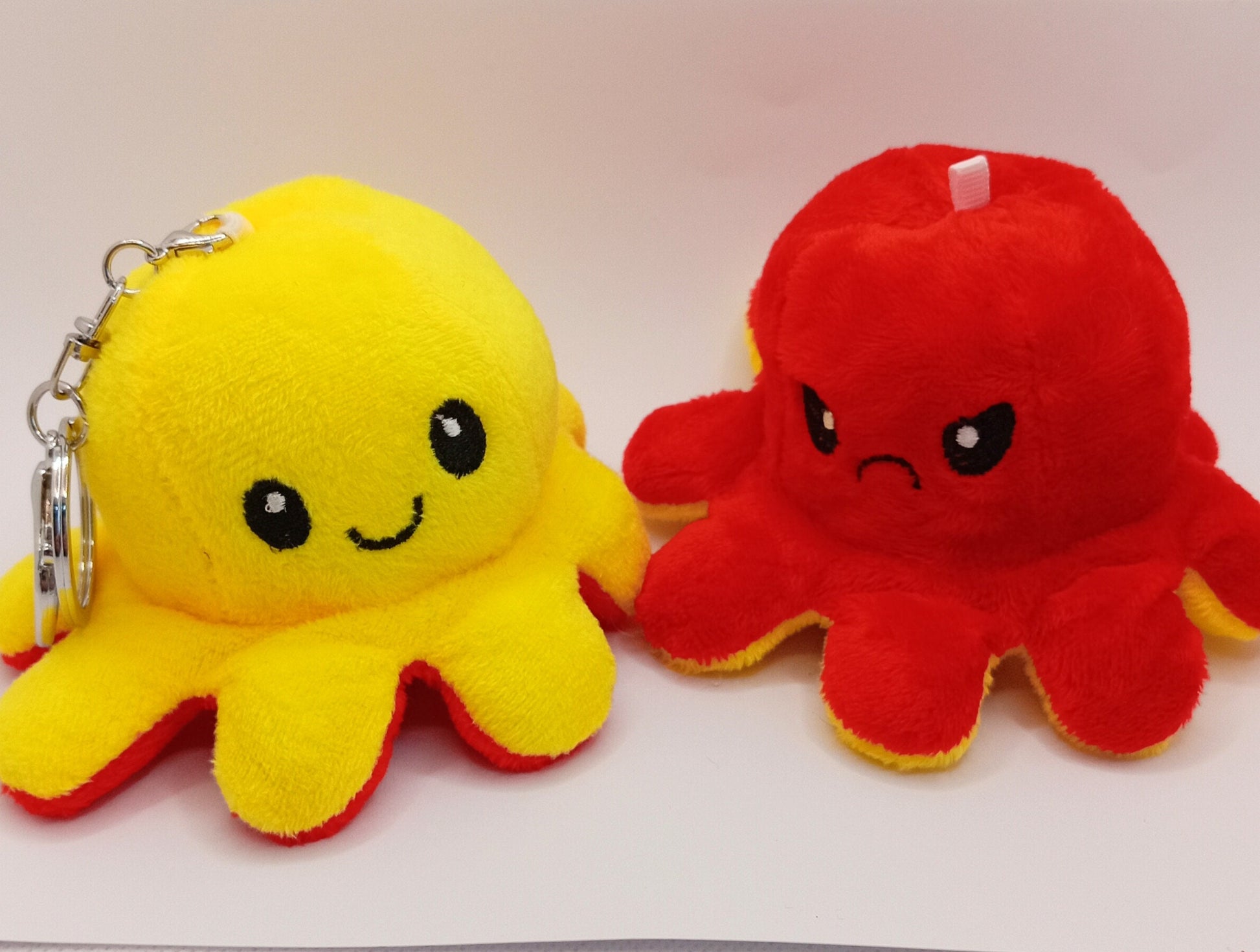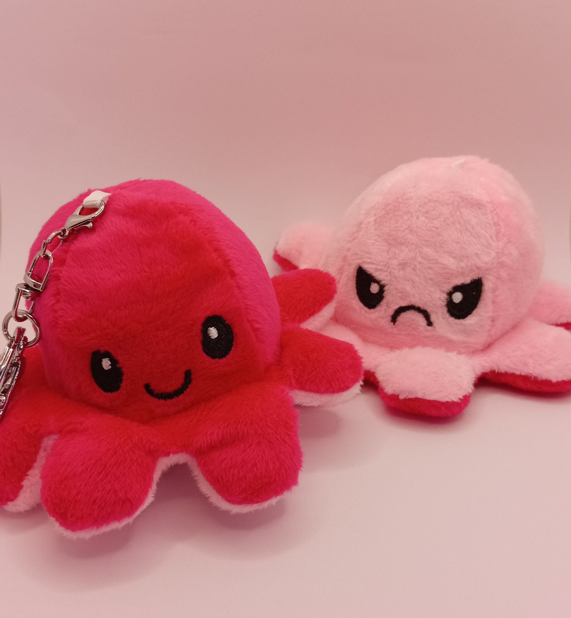 Feel good with our adorable anti-stress reversible octopus keyrings. Our little plushie octopuses are the perfect accessory for bags and keys. Each octopus is reversible to show happy and sad emotions.